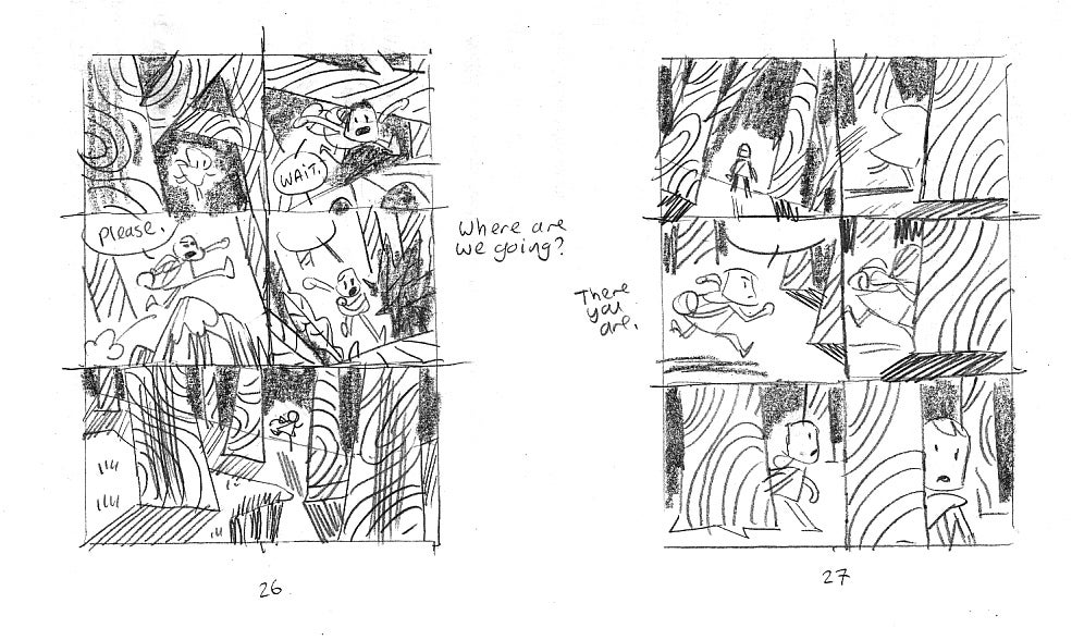 There's a lot of work that goes into it, and what you see in a book like Kerry is the tip of the iceberg. I have free to download, on my Gumroad, all the thumbnails from that book. That's two hundred and fifty pages of thumbnails I did in pencil, which are kind of cool in their own way because they're more expressive and loose. You lose some of that in the finished book. But yeah, you may do a draft or two of that, and that will interact with the script again. So you go back and do another draft of the script. It's a very organic process, and that's the way I like it because there's always something new to discover on each step.