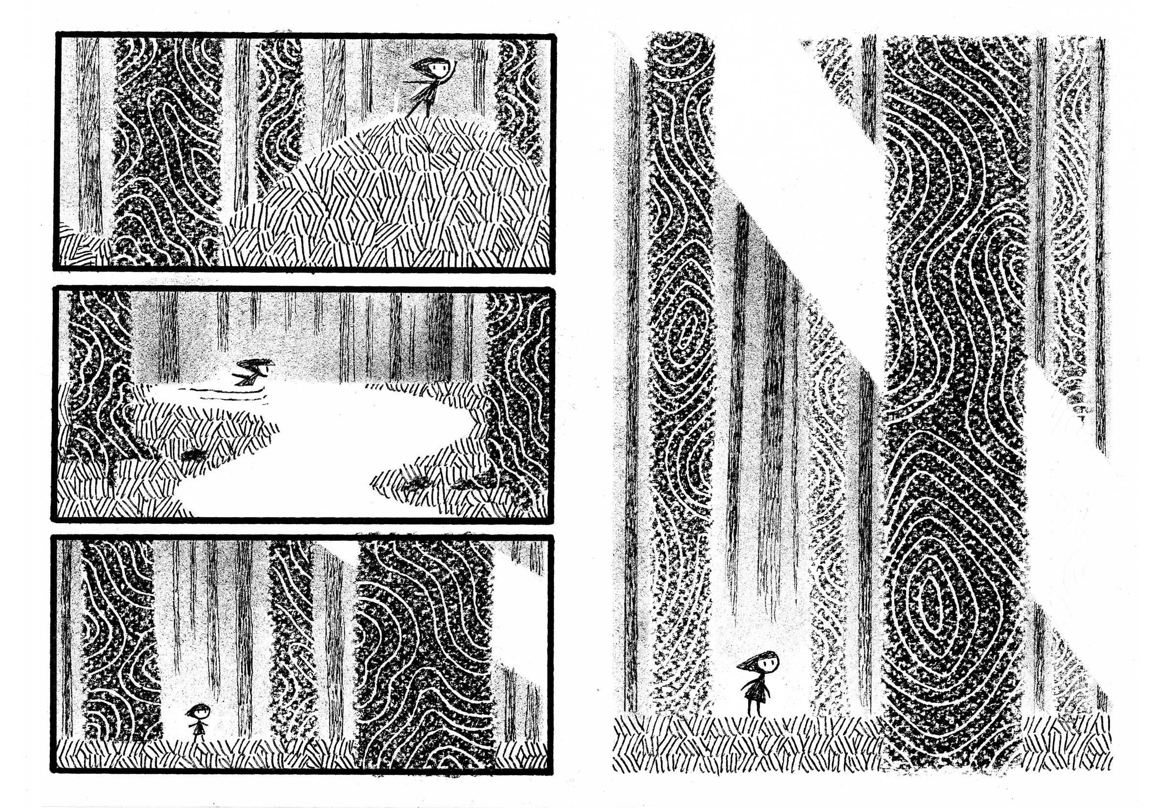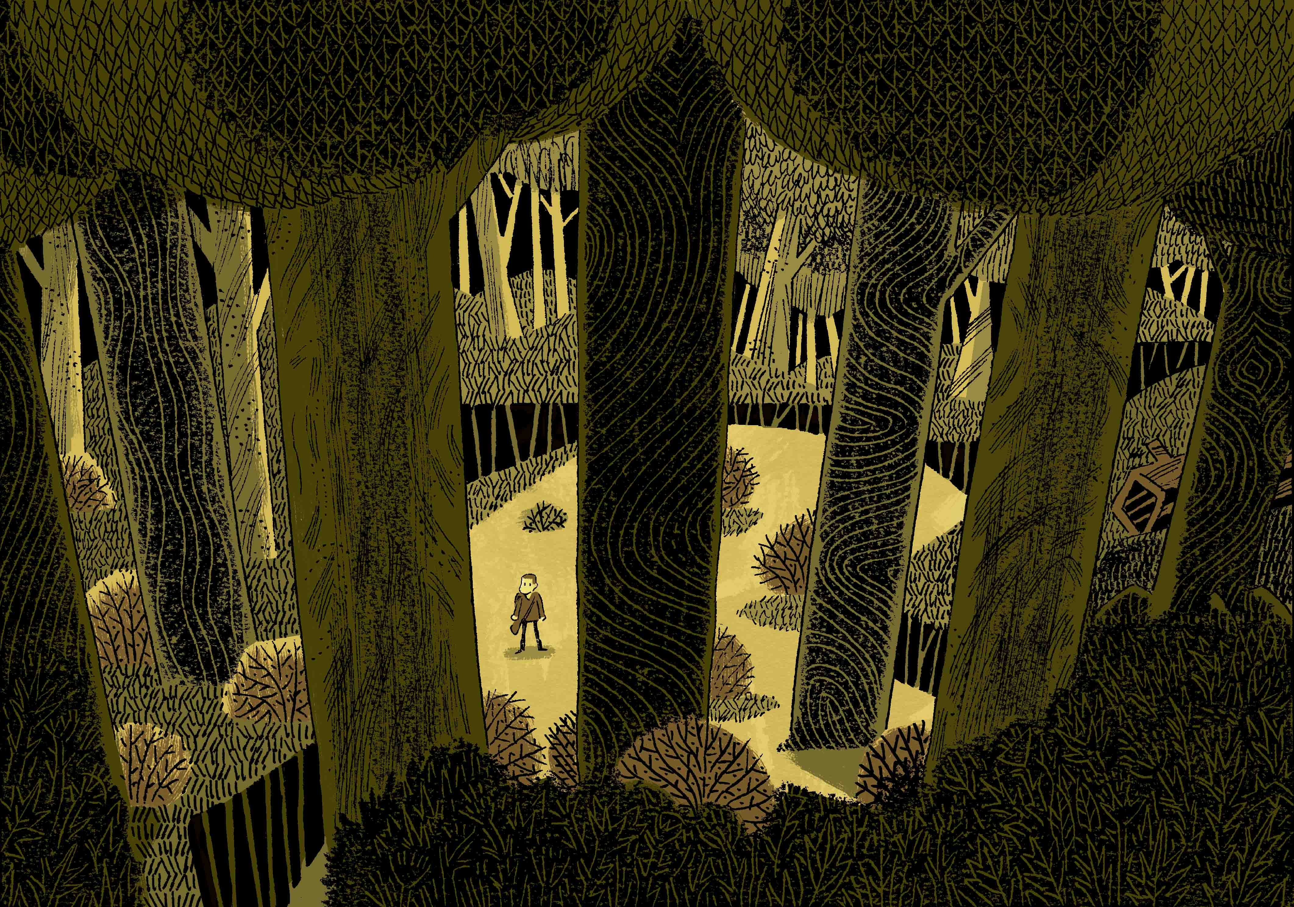 That's my starting point for the character. From there, it's like, what kind of person goes into a dark scary forest when they don't have to? That's where the story took off really— that this character Kerry has to travel on a shortcut through the forest to get medicine to his parents who are sick, where he meets a knight of the forest who isn't the knight that you expect he'd be.