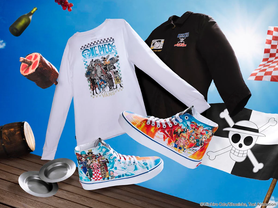 If you like bold prints and graphic tees, one collection you should check out is the One Piece collaboration with Vans. Vans and One Piece released the first collaborative series of footwear that features Nami, Nico Robin, Luffy, and the rest of the Straw Hat crew even decked out in the iconic checkerboard patterns. The collection also has a variety of shirts, jackets, and hats, so there’s really a lot of choices to choose from.
