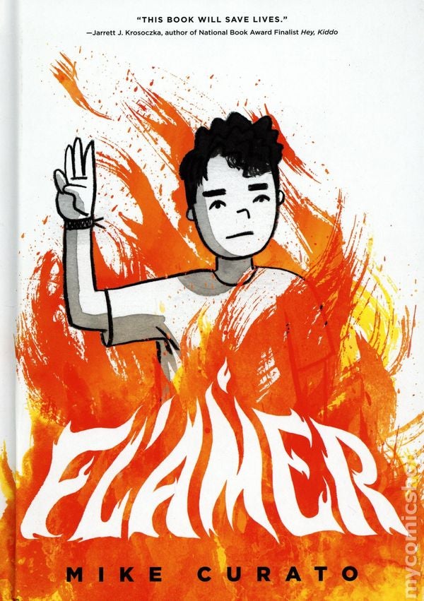 Friedman points out, it’s not just books about sexuality or race that are being targeted, either. It’s “also books about suicide, grief, sexual abuse—so many topics that people may find personally difficult or taboo to talk about.” Curato actually wrote Flamer specifically for kids afraid there’s something wrong with them and might be considering suicide. “When we don’t see ourselves reflected in books, TV, film, when we don’t see ourselves in government or places of leadership,” he says, “we start to wonder if we’re supposed to be here.” That was very much his own experience growing up. “When I was 14, I was a chubby Filipino-white mix kid who was trying to figure things out,” he says. And there was no one represented in media who could reassure him that he was okay.