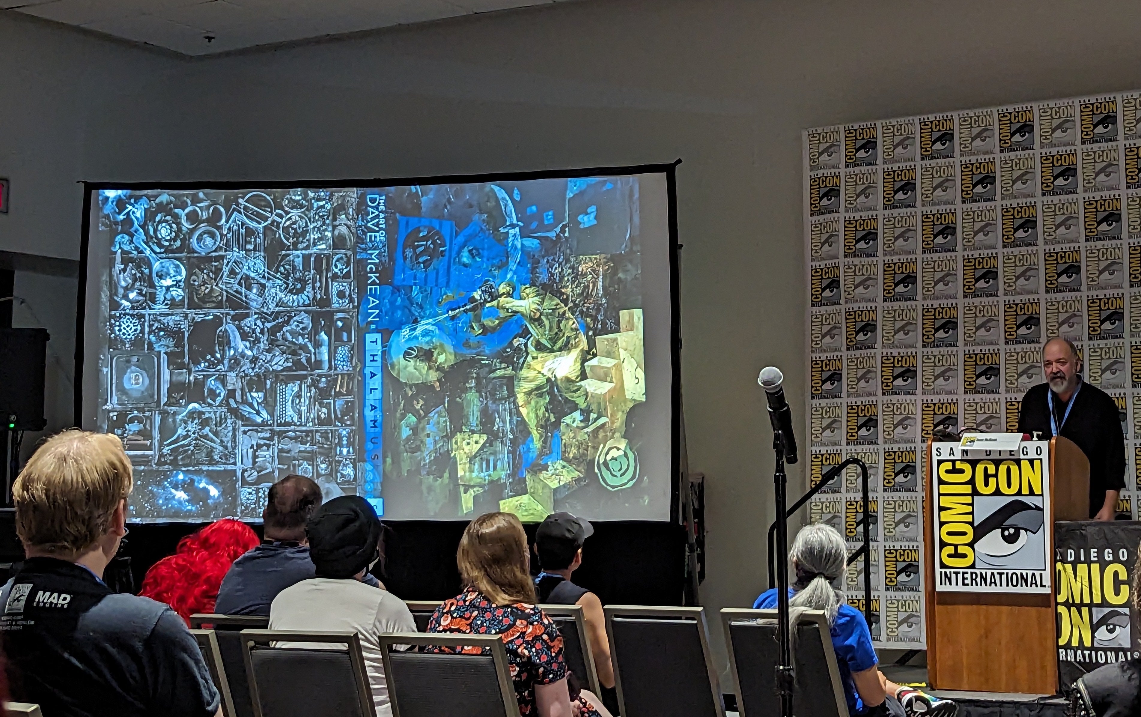 “I started to see these images online that I didn’t understand, so I looked into them and it turns out they were pieces of AI art,” explained McKean, introducing the topic during his San Diego Comic Con From DC to AI panel this year. “So after spending about a day on the floor of my studio in the fetal position at this realization, I decided to play around with some of the bots so that I could get my head around it and try to better understand what it was.”