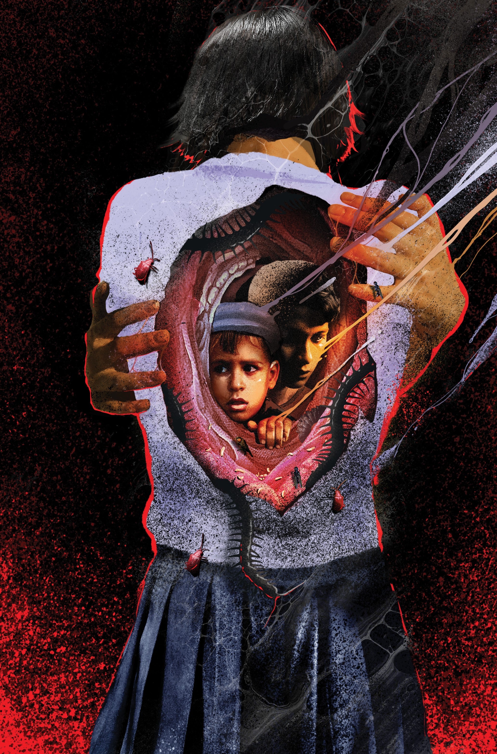 [Laughs] Jeff never complains, I think it’s less of 'You want me to draw what?' as much as it is glee. He’s been wanting to draw horror for a long time. If you’re familiar with his stuff, it can veer towards cartoony, with a warped edge to it. We’re asking him to go hard [with the horror]. I’m so grateful we have someone like Jeff who just wants to lean into the gore. He’s also so good with acting, and with the innocence of children. He has the perfect range for this–an absolute dream to work with.