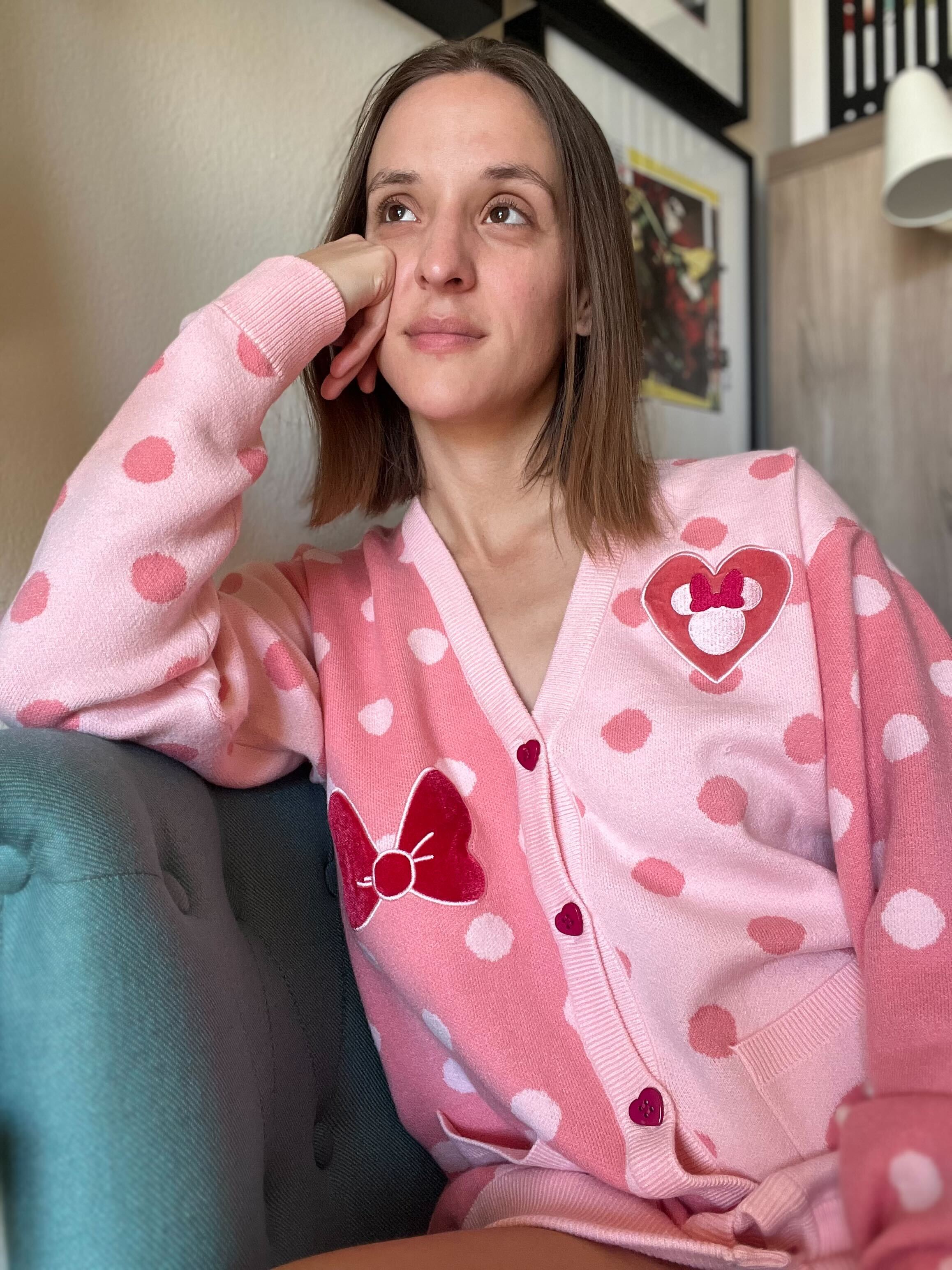 BoxLunch generously sent Popverse's Ashley Victoria Robinson the Disney Minnie Mouse Polka Dot Women’s Cardigan you can see below. The incredibly soft oversized cardigan is perfect for curling up in your reading chair of choice, with a warm cat tucked in beside you, reading Percy Jackson and the Olympians because you weren't emotionally prepared to deal with the Disney+ debut season coming to an end. A warm embrace from Minnie Mouse is self-care!