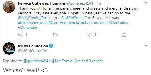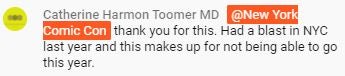 Hey, I just want to say thank you for your energy and fun comments this weekend. I’ve been missing being at NYCC, and this has brought the magic at a time when I surely need it. Here’s wishing things are better next year, and we can all be queued up for main stage panels.