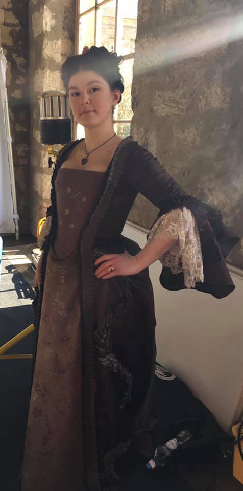 Even when on set, when filming is paused to fix the main cast’s hair and makeup, extras would also be getting checked and fixed up too. Being a period drama, my long black hair was perfect to be able to curl and pin up, but some extras would have to wear wigs to look the part. The filming normally happened a couple of weeks later, which meant you had to be careful not to indulge too much or the costume would no longer fit. One outfit I had to wear was super tight and consisted of multiple corsets, so there was no wiggle room at all.