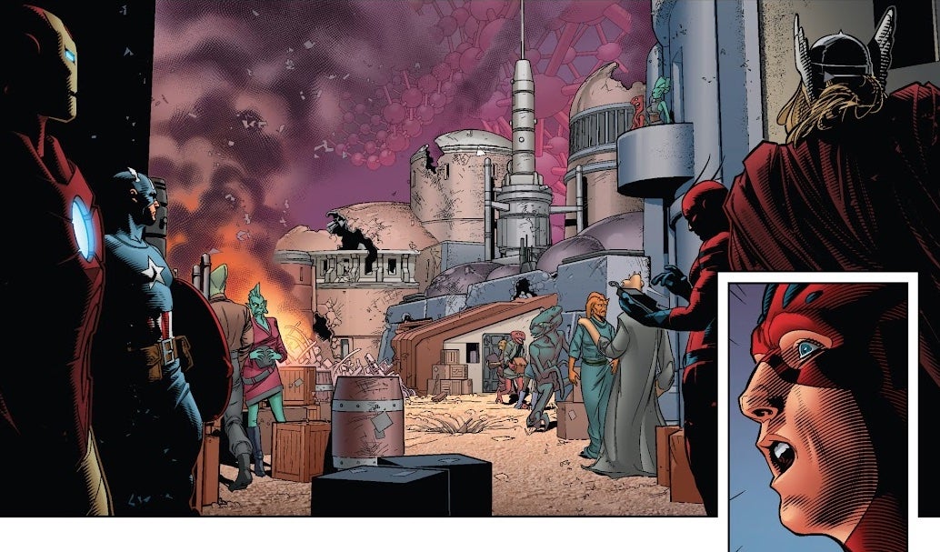 In the last 10 years, a number of comics have finally seen Ant-Man traveling to the Microverse. In 2013 at the end of Avengers volume 4, Brian Michael Bendis and Terry Dodson have Hank Pym and the Avengers travel into the Microverse to rescue Janet van Dyne, who they thought had died during the 2008 Secret Invasion miniseries, but in fact had gotten trapped in the Microverse. Though their adventure there took place in just one city, once again there was a scifi fantasy feel, complete with space ships, alien races, and an armored centaur who looks an awful lot like Baron Karza as the bad guy.