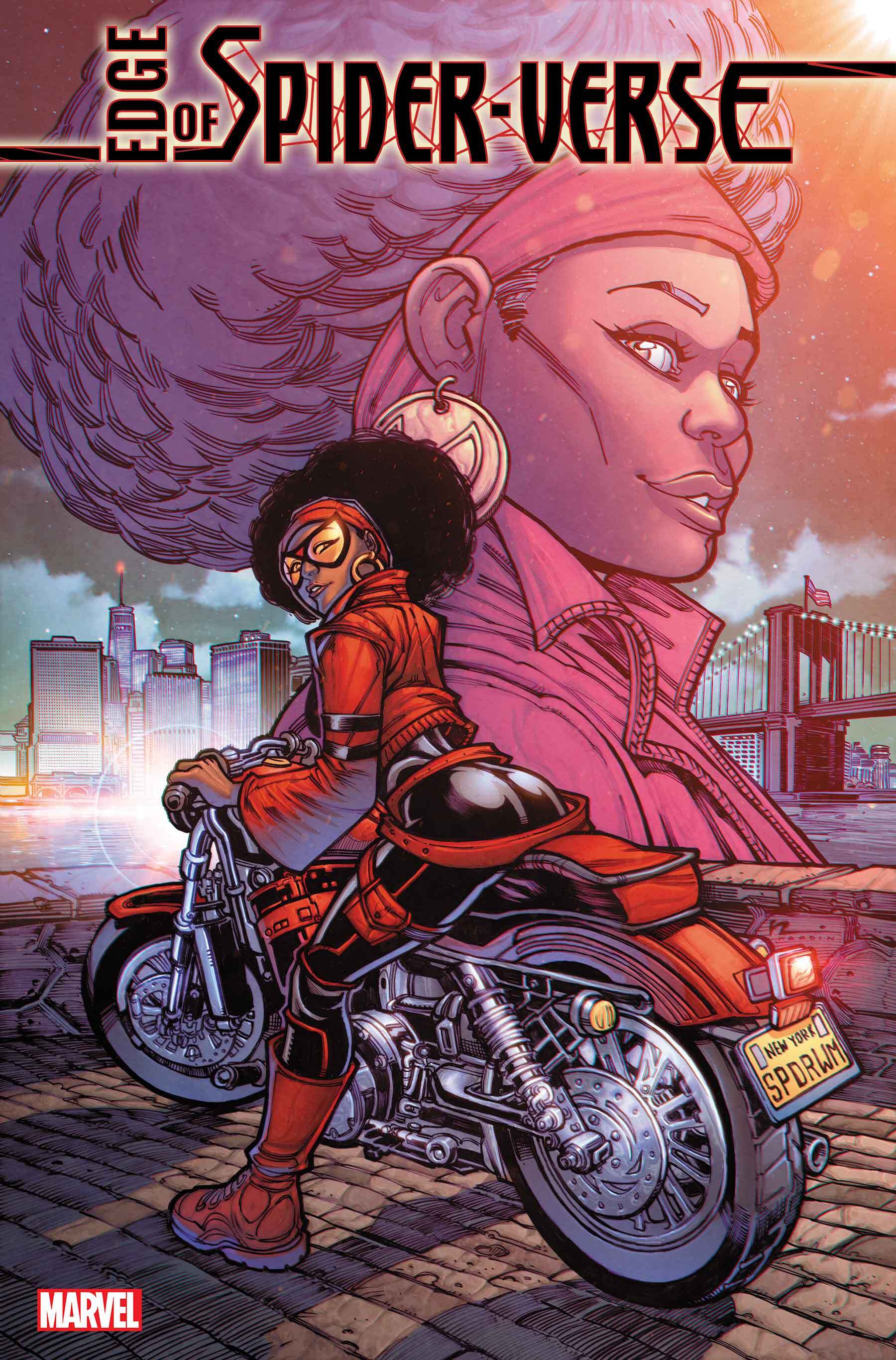 The motorcycle-riding Spider-Woman explodes into Edge of Spider-Verse #4, coming this May