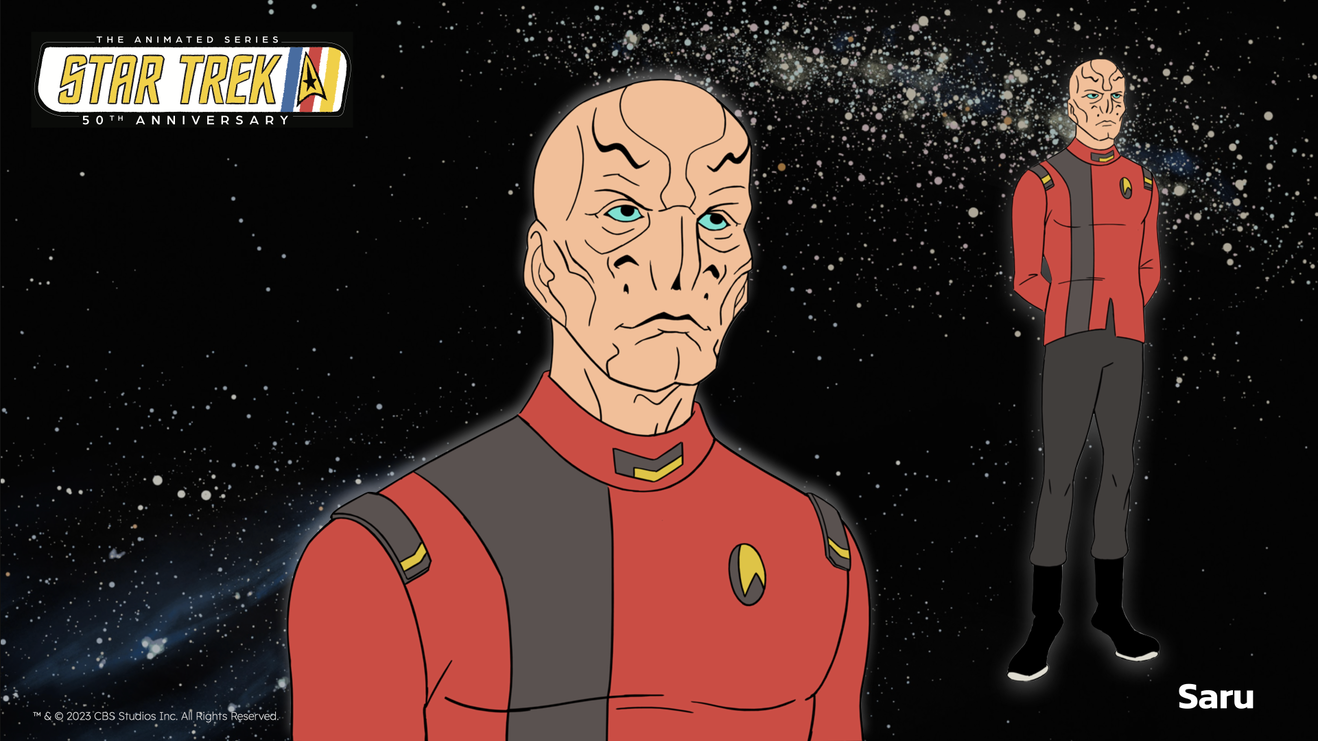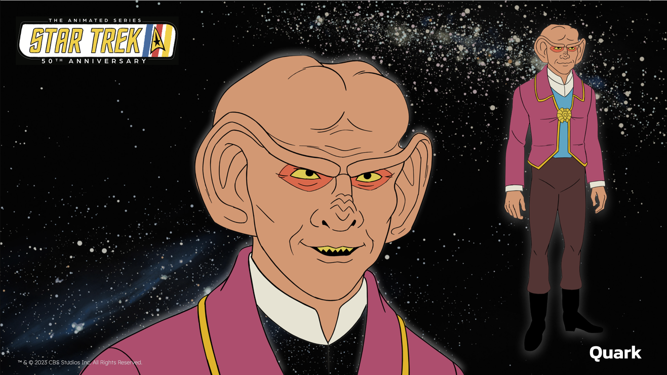 CBS's salute to the series comes in two parts. The first will be five all-new animated TV spots in the style of the show's 1973 animation, but featuring Star Trek characters that came after the cartoon went off the air. So far, CBS has confirmed that three Trek staples are returning to voice their characters for the TV spots; those being Jonathan Frakes as Will Riker, Doug Jones as Saru, and Armin Shimerman as Quark. Check out their character designs below.