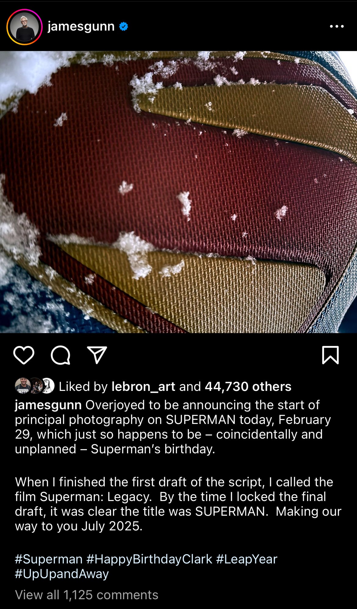 On February 29, 2024, director James Gunn took to Instagram to post the most exciting update on the upcoming Superman film yet - an image of Superman's iconic 'S' shield and a change to the title. You may recall that Gunn posted a cast photo recently, however, none of them were wearing even a scrap of costume. With this new image, we see not just the first image of one of those costumes, but the first design of the new DCU.