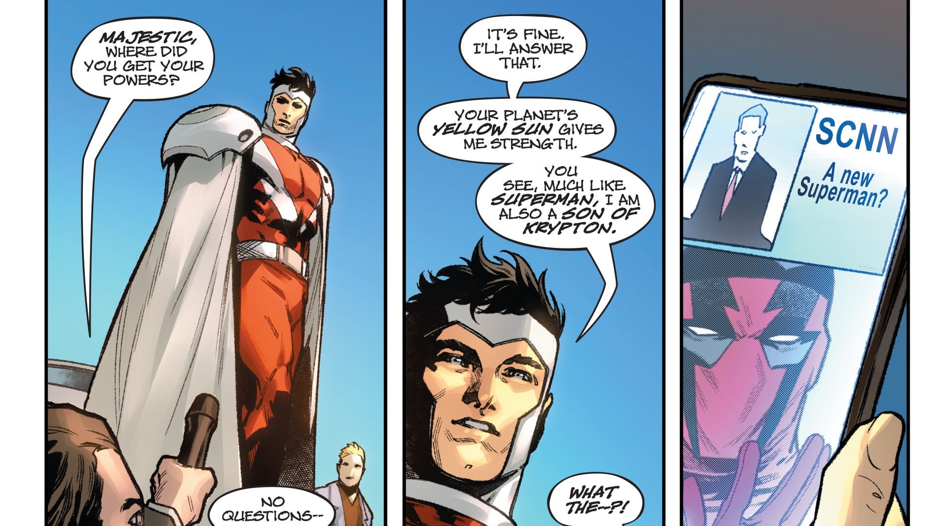 Created by Jim Lee and H.K. Proger in 1994, Majestic is a Kheran champion who is trapped on Earth following a war between the Kherubim and Daemonites in the preceding WildStorm Universe continuity. Like Superman, Majestic draws his powers from the yellow solar radiation provided by Earth’s sun, giving him similar powers as a Kryptonian, with the addition of energy manipulation and telekinesis. In contrast to the more benevolent and compassionate Man of Steel, Majestic is a more coldly militant figure who openly employs lethal force and proactively attacks perceived threats before they can attack dangerously.