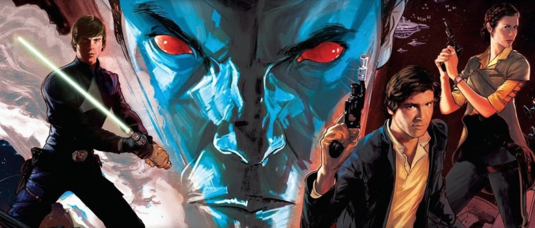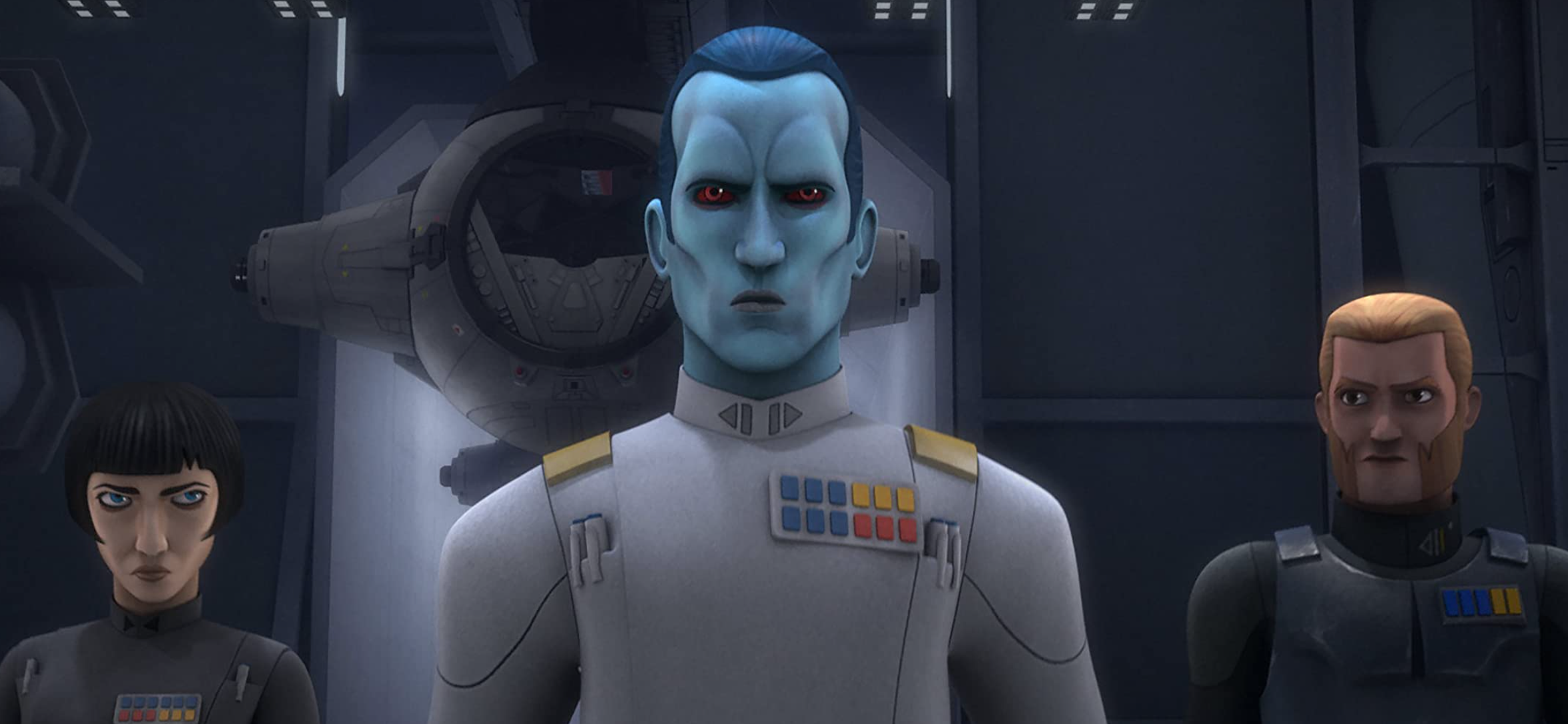 Thrawn first appears in the 1991 novel Heir to the Empire, written by Timothy Zahn (If you’re thinking, “Hey, doesn’t Ahsoka call him ‘Heir to the empire’ in the trailer?,” you’re right! That was almost certainly an easter egg for Thrawn fans). Thrawn is introduced in the novel as one of the Empire’s greatest generals and resistor of the New Republic being formed by Luke, Leia, Han & Co. Though the Imperial forces are significantly weakened by Palpatine’s defeat at the end of The Return of the Jedi, Thrawn manages to organize them into a force that seriously disrupts the founding of the galaxy’s new democracy and even more seriously endangers the lives of the films’ heroes.