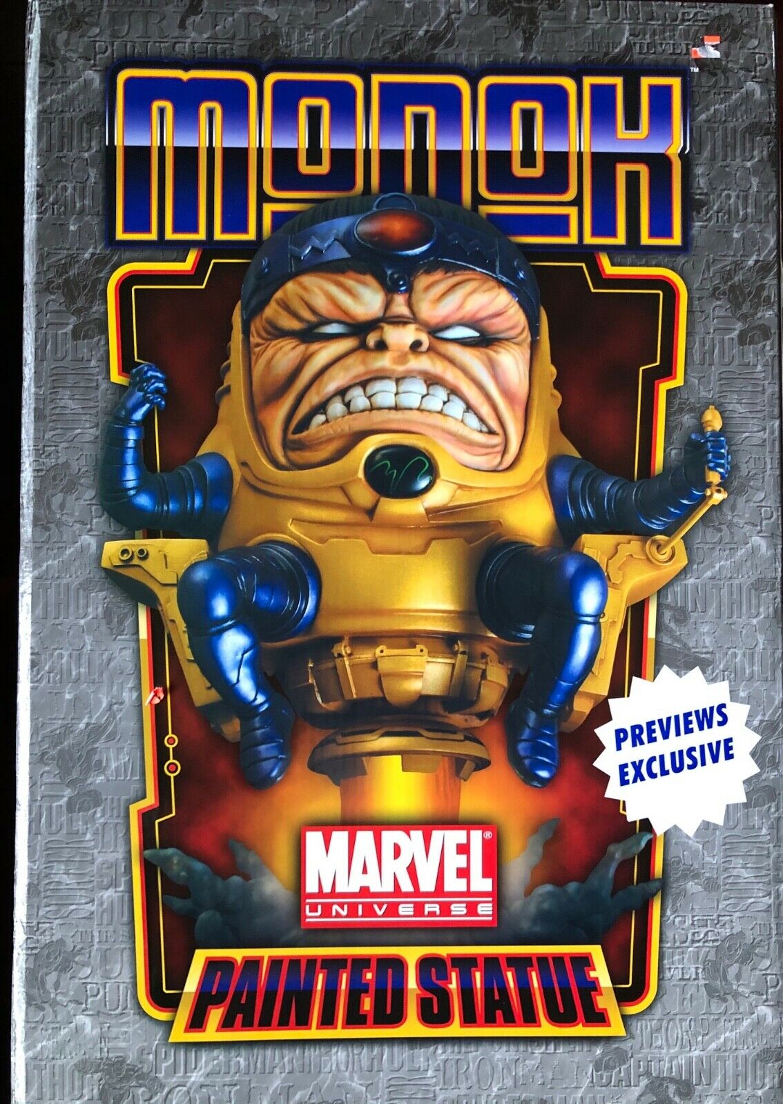 If you are into more high end collectibles, look no further than the Bowen Designs statue produced in 2011 as a previews exclusive; sculpted by the Kucharek Brothers, this piece capture M.O.D.O.K. in all of his villainous glory and is HUGE at a whopping 15 inches tall! This piece is a highly sought after statue and could cost you a pretty penny…but is totally worth it!