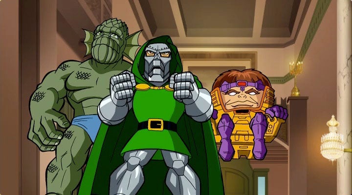 M.O.D.O.K. has made a number of appearances in Marvel animated shows like Iron Man: Armor Adventures, Avengers: Earth’s Mightiest Heroes and Ultimate Spider-Man but my favorite has to be as the comedic lackey for Doctor Doom in The Super Hero Squad Show! For all you Spongebob Squarepants fans out there, M.O.D.O.K. is voiced by Tom Kenny in this iteration.