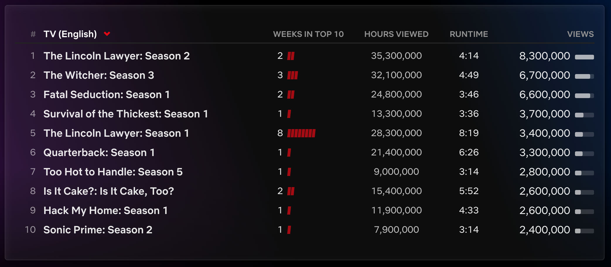 That's a question above my paygrade, but it's one worth asking. Still, even with viewing dropping, The Witcher has already been renewed for both a fourth and fifth season, so things could be worse. And yet… when a courtroom drama is beating a big-budget tentpole series for the second week in a row, that’s not a good sign of the show’s longevity overall.