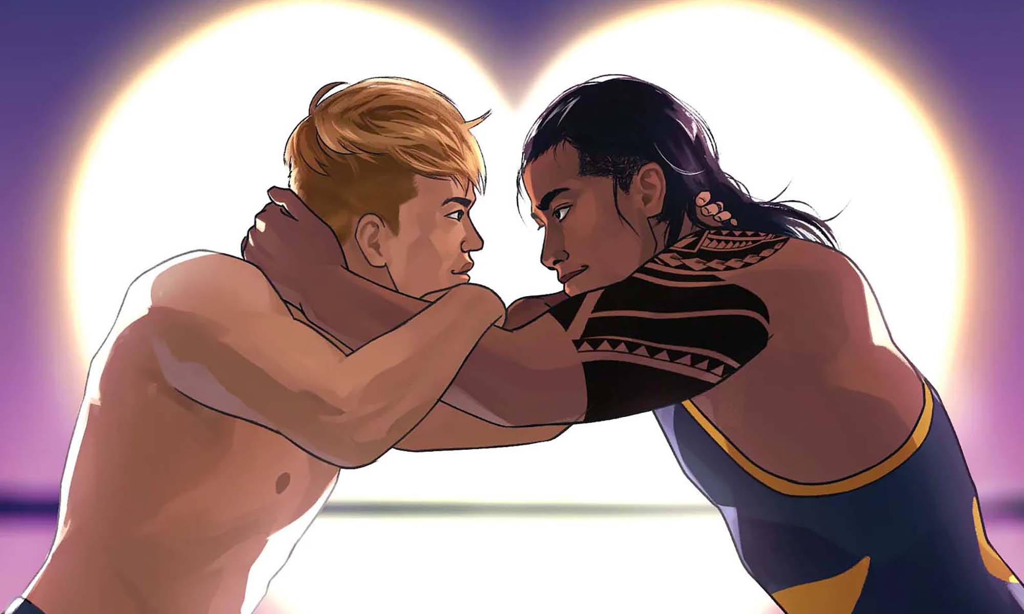 Next up is an incredible book from a genre that’s wildly and surprisingly underrepresented in the world of wrestling media: the incredible queer romance graphic novel Rubber Match. Written by Elizabeth Brei with art from Kira Okamoto and letters by Danny Djeljosevic, Rubber Match is the love story of rivals-turned-tag team Scorpion Butch and Ty Curry told through a series of matches, both the titular singles rubber matches and their tag team outings.
